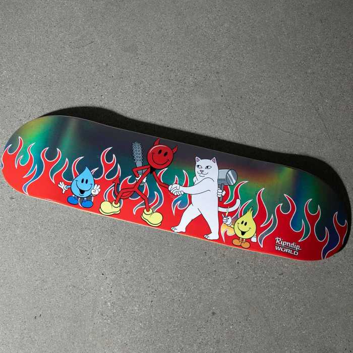 A limited edition deck from the collab between Ripndip and World Industries. Featuring awesome bottom & top graphics, metallic backing and vibrant colours.