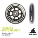 8 Wheels Per Set Diameter: 76mm Durometer: 80a 16x SG5 Bearings Included 8x 6mm Spacers Included Less Friction and Increased Speed - SG5 silicone/grease Rollerblade 76mm wheels are designed for reliable performance at a great value. The wheel kit comes with (8) 76mm wheels, (16) SG5 bearings and (8) 6mm spacers preassembled for replacing wheels.