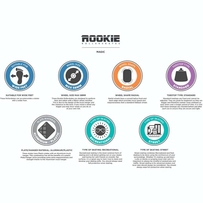 The Rookie Magic V2s are the perfect pair of skates for beginners and intermediates, with a comfortable fit, available in a range of sizes, suitable for both younger riders and adults. It's design and features are typical of the Rookie brand and quality, giving you the confidence to skate either indoors or outdoors.