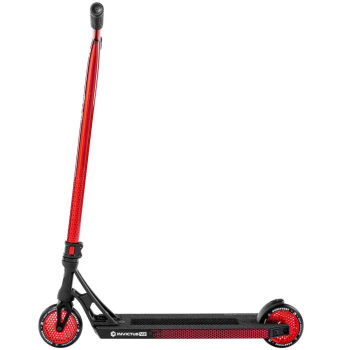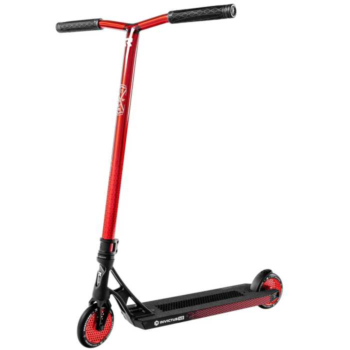 Introducing the Root Invictus V3 Stunt Scooter from Root Industries, experience unparalleled performance, perfectly balanced, super-lightweight and fast! This scooter is tailored to the seasoned rider, this scooter provides great agility and stability. Measuring at 90cm tall, it boasts a durable HIC compression system and a sturdy one-piece deck, guaranteeing robust endurance and accuracy. The contemporary Y-shaped Chromolite bars alongside the ever popular 120mm honeycore wheels offer a perfect blend of style and strength. With its sophisticated honeycomb design throughout and responsive flex fender brake, this scooter is crafted for those who seeking top performance with every ride.