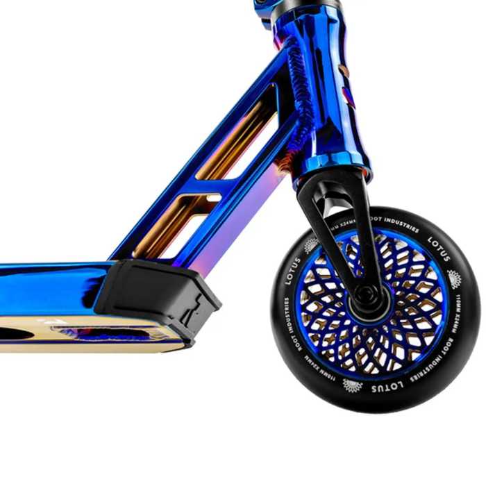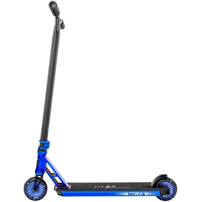 Introducing the one of Root Industries lightest pro model stunt scooters yet and one of the lightest of it's size on the market weighing in at a 3.1kg, rocking a 19.5" (495mm) length by 5" (127mm) width deck, 650mm (25.5") tall bars. The Type R GT is the highest spec premium scooter within the Type R Stunt Scooter range. Using a collection of some of the most innovative components ever created by the Root Industries brand, the popular HMA Aluminium bars, new GT clamp, Lotus wheels, Fractal hand grips, Air headset and cold-forged IHC one piece forks.
