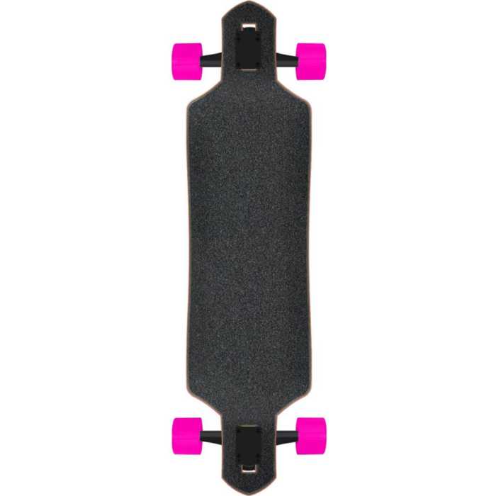 A medium sized drop through shaped 9 ply deck, coupled with Bullet 180mm RKP trucks and 60mm Santa Slime Balls wheels gives a responsive all round setup. Finished off with Jim Philips inspired artwork.