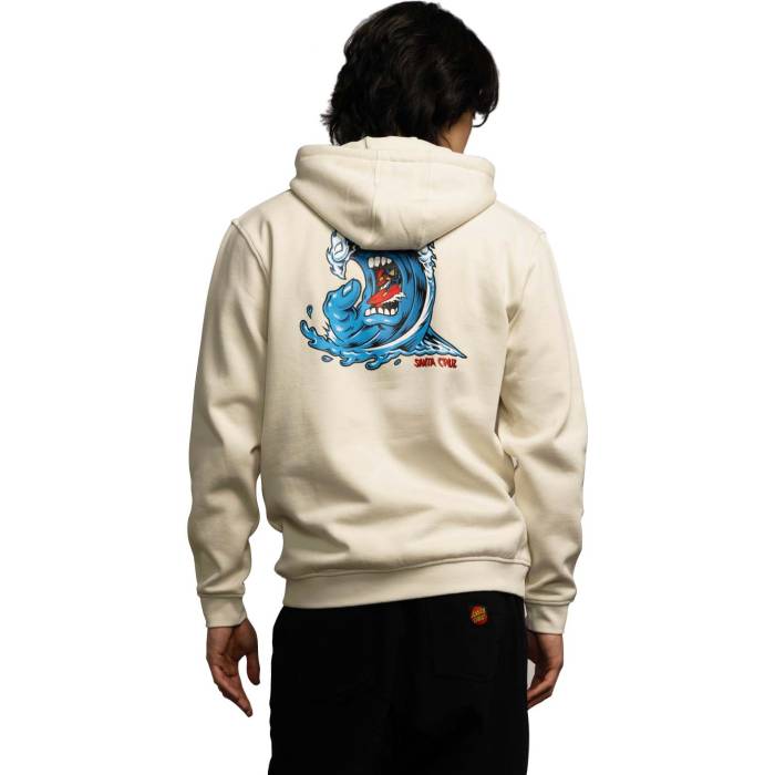 The Santa Cruz Delfino Screaming Wave regular fit hoodie is a heavyweight fleece pullover sweatshirt. It features a Screaming Wave graphic printed at the left chest and a larger print at the back in soft hand ink.