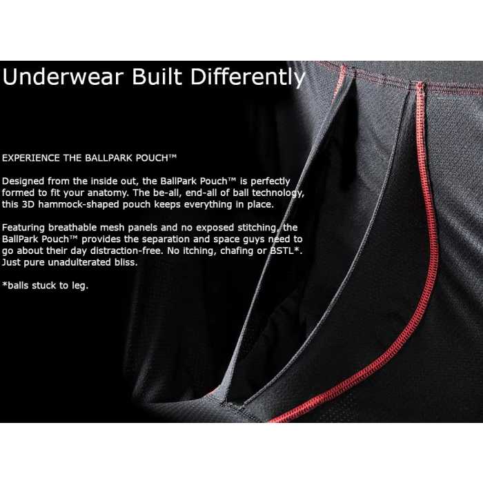 BallPark Pouch: A 3D hammock-shaped pouch designed to keep everything in place. Thanks to mesh panels and Flat Out Seams, the BallPark Pouch prevents skin-against-skin friction and ensures chafe-free support.