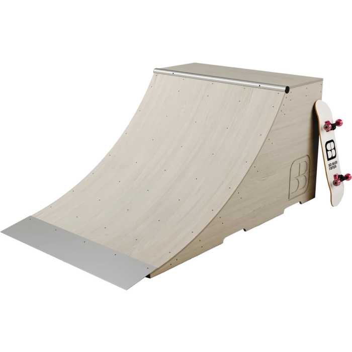 A portable quarter pipe offers great fun and flexibility, great for street or driveway use! It arrives flat packed for easy assembly, complete with all the parts and riding surface material.