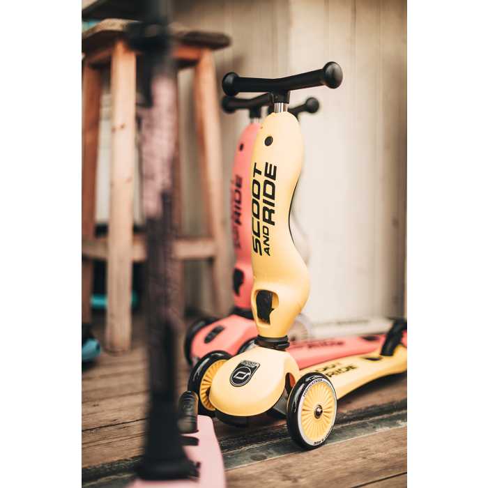 The Highwaykick 1 is the ideal companion for children aged one to five years. It is a 2-in-1 one kickboard ride-on with seat. No tools needed for adjusting the seat height or converting it into scooter mode. It grows easily together with your little one. Because of its stability this product gives the little ones the opportunity to move safely and comfortably inside and outside. The patented safety pad in the front offers extra security and prevents tipping over.