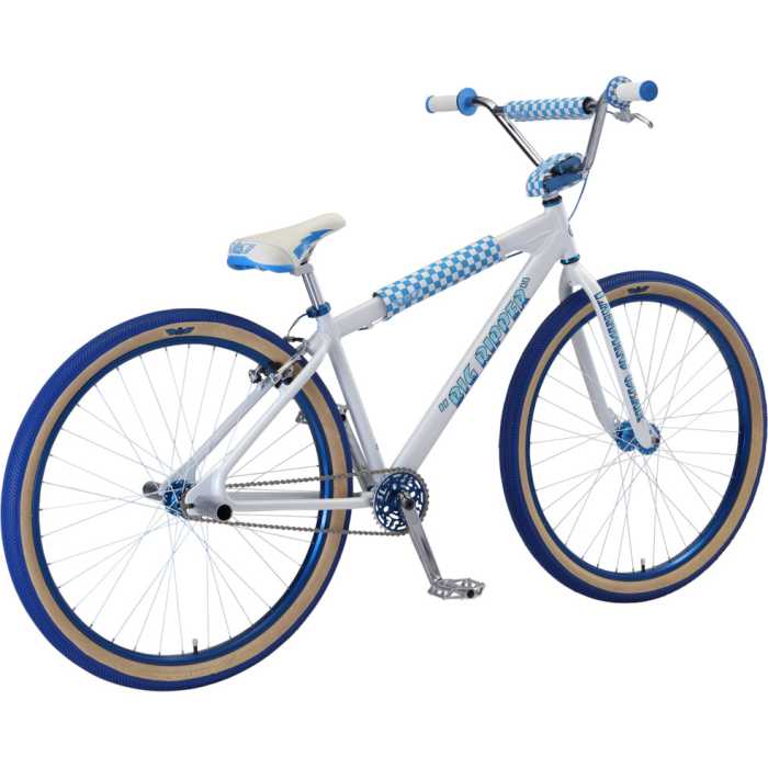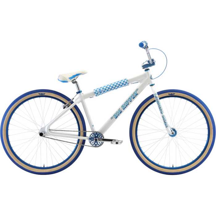 The 29" Big Ripper has been a staple in the SE line for over 10 years now. It’s built around a monster-sized PK Ripper style frame and features a bright Arctic White colorway. The spec is top notch with Cr-Mo Landing Gear forks, double-wall rims, Vee Speedster tires, and a new Lightning Bolt snap padset. One glance, and it’s easy to see that the Big Ripper is the baddest 29" BMX bike out on the streets.