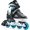 The Pulsar adjustable inline skate features a semi-soft boot which can be easily set to a different size with the push of a button. Each size range encompasses 4 shoe sizes so they grow with you.
