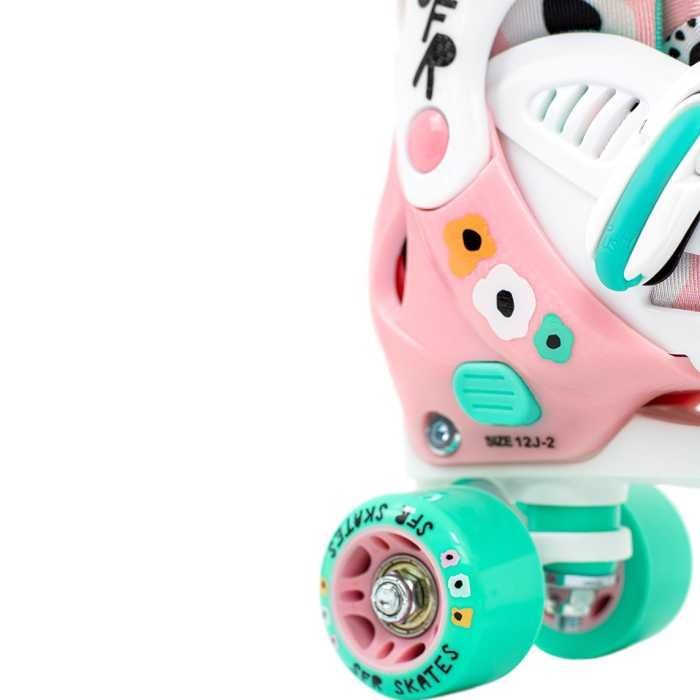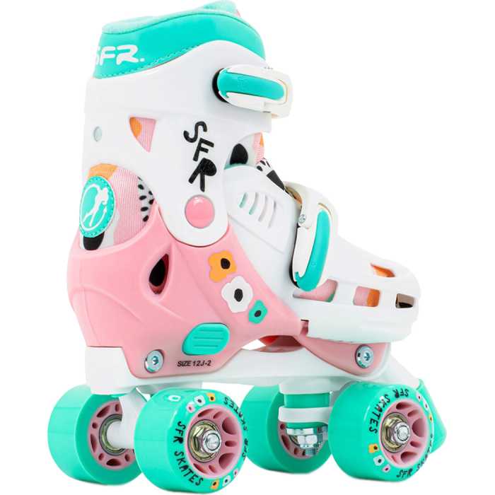 The SFR Storm V is the perfect hard boot size-adjustable quad skate designed especially for little skaters and children looking to get into roller skating. The hard outer shell and high cuff gives great support and stability, making them ideal for little shredders whilst the soft comfort fit liner makes them super comfortable to wear – perfect for those starting to learn to skate!