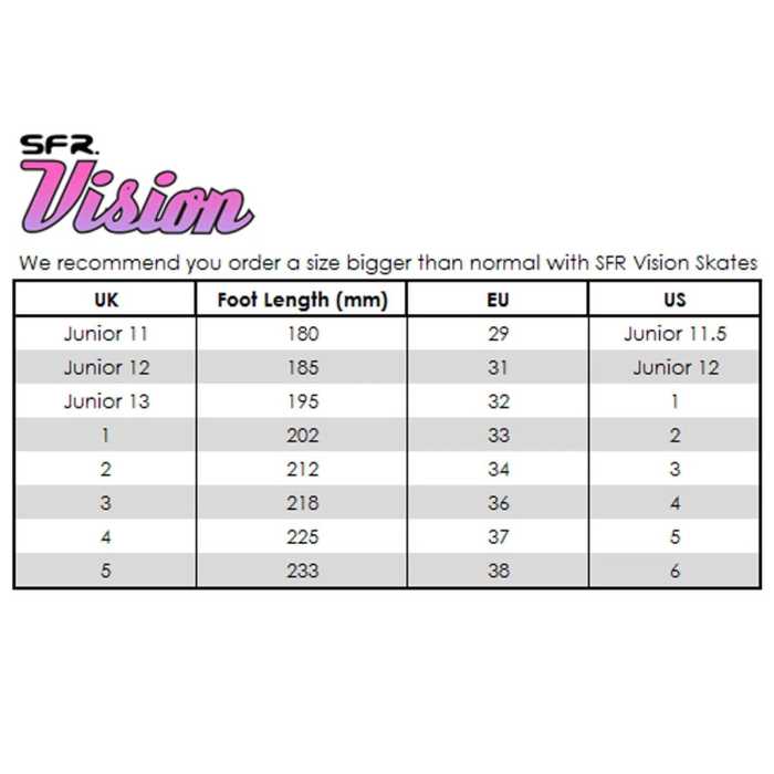 Perfect for beginners, the SFR Vision Canvas skates are stylish and comfortable. High cut canvas upper with great designs, they make ideal skates for any budding young skater out there.