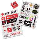 A pair A5 sticker sheets with all your favourite brands. One is a mix of various brands and the other is a full SkateHut sticker sheet.