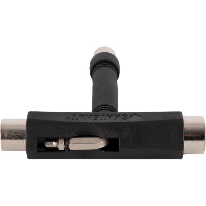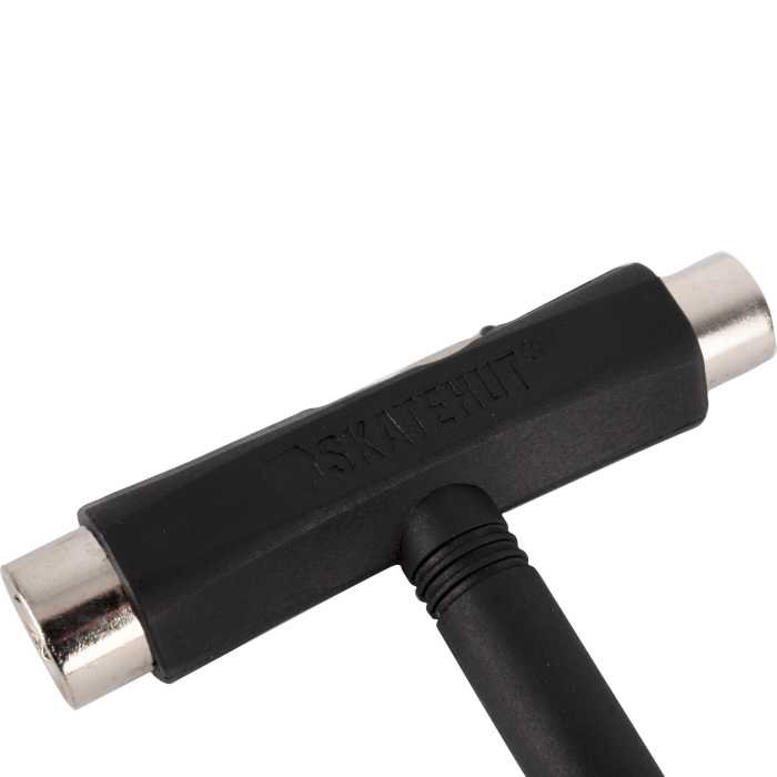 Assemble and disassemble your set up with speed and ease using SkateHut's all-in-one skate tool. In a classic T-Shape, this tool includes 3 different sockets - 9/16" for your trucks, 1/2" for wheels, and 3/8" for nuts, and other hardware. If this wasn't enough, you also get a screwdriver for allen and phillips truck bolts, which slides out easily for your convenience!