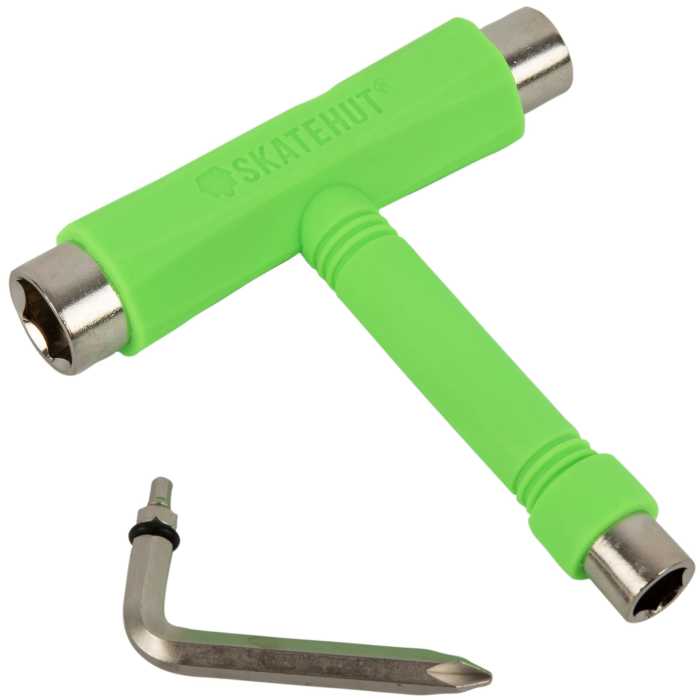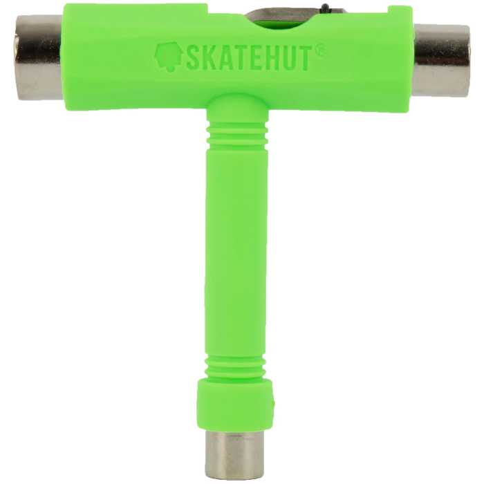 Assemble and disassemble your set up with speed and ease using SkateHut's all-in-one skate tool. In a classic T-Shape, this tool includes 3 different sockets - 9/16" for your trucks, 1/2" for wheels, and 3/8" for nuts, and other hardware. If this wasn't enough, you also get a screwdriver for allen and phillips truck bolts, which slides out easily for your convenience!