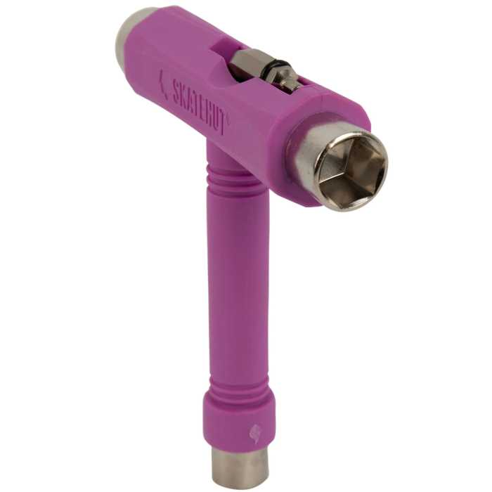 Assemble and disassemble your set up with speed and ease using SkateHut's all-in-one skate tool. In a classic T-Shape, this tool includes 3 different sockets - 9/16" for your trucks, 1/2" for wheels, and 3/8" for nuts, and other hardware. If this wasn't enough, you also get a screwdriver for allen and phillips truck bolts, which slides out easily for your convenience!