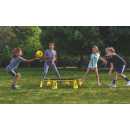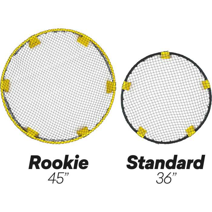 Its 50% larger frame, 6 legs, 6 rims, and 1 larger ball will make it much easier to learn basics. We designed this set for our younger and/or beginner players. Play on grass, sand or indoors.