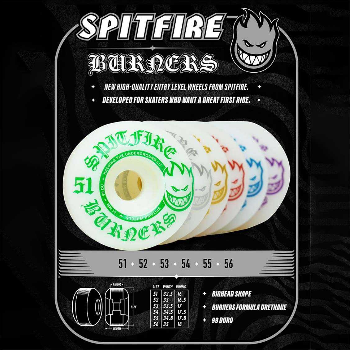 Replace your old stock wheels with these awesome new Burners from one of the best wheel companies to ever do it, Spitfire.