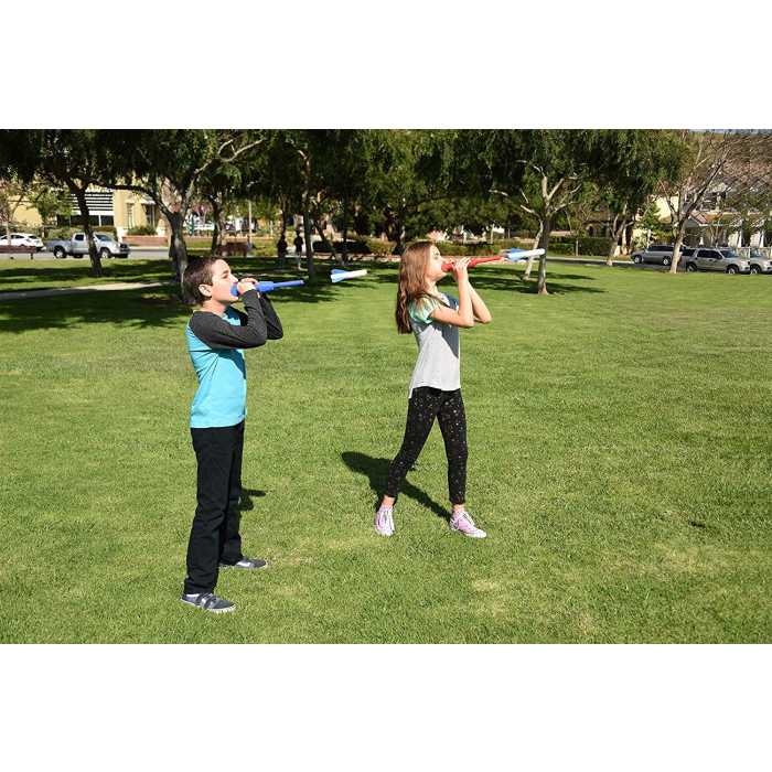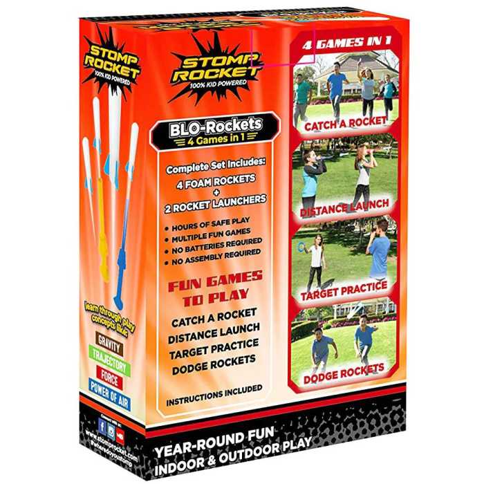 Includes 2 Rocket Launchers, and 4 foam Stomp Rockets. 4 games in 1 - hours of safe play with such fun games as: Catch a Rocket; Distance Launch; Target Practice; Dodge Rockets. Encourages exercise. Limits screen time. Promotes STEM learning. Year-round fun. Multiple games for endless indoor and outdoor play. Ages 5 and Up. 100% KID powered: Just blow to launch these rockets! No batteries and no assembly required. Great for year round fun to get kids away from screen time and more active outside.