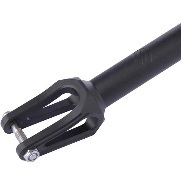 The Gravis stunt scooter fork is synonymous with strength and tidiness, using clean aesthetics to complement nearly any scooter configuration, making it an obvious choice for many riders. This fork includes an axle and integrated wheel spacers compatible with 24mm wide wheels, compression components are not provided, leaving the choice between SCS or HIC to yourself.