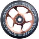 The Striker Stunt Scooter wheel is both lightweight and robust, ideal for substituting any worn-out wheel on most scooters. It comes in a classic 110mm size and includes a pair of fast ABEC9 bearings pre-installed. The core is both solid and lightweight, crafted from aircraft-grade aluminium, with a well balanced urethane mix suitable for riding both in skateparks or on streets