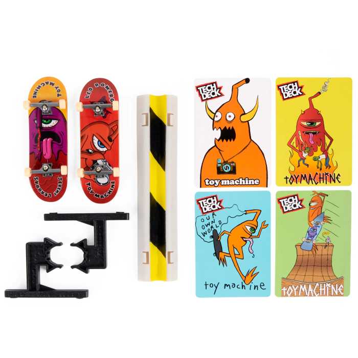 - Each pack includes: 2x Assembled Tech Deck 96mm Fingerboards, 1x obstacle, 4x Challenge Cards