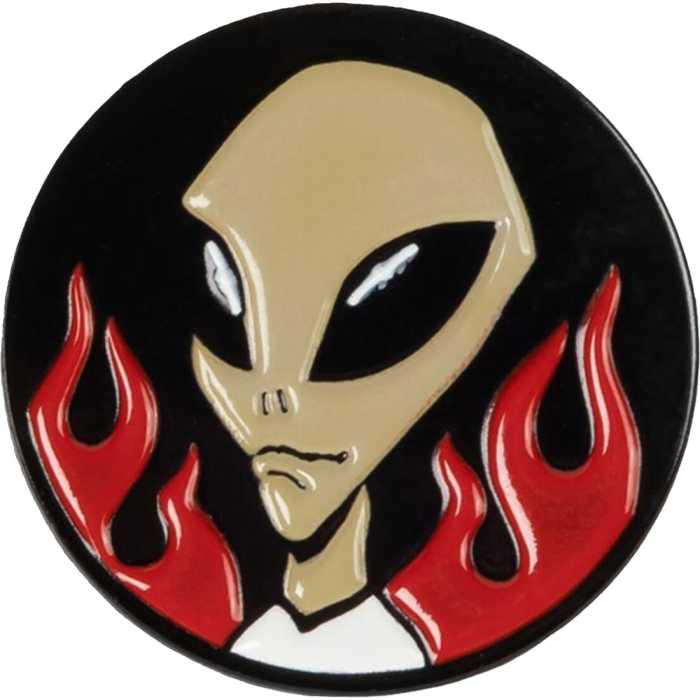 An awesome accessory from the Thrasher x AWS colab, this lapel pin features the classic Believe alien graphic surrounded by Thrasher's iconic flames.