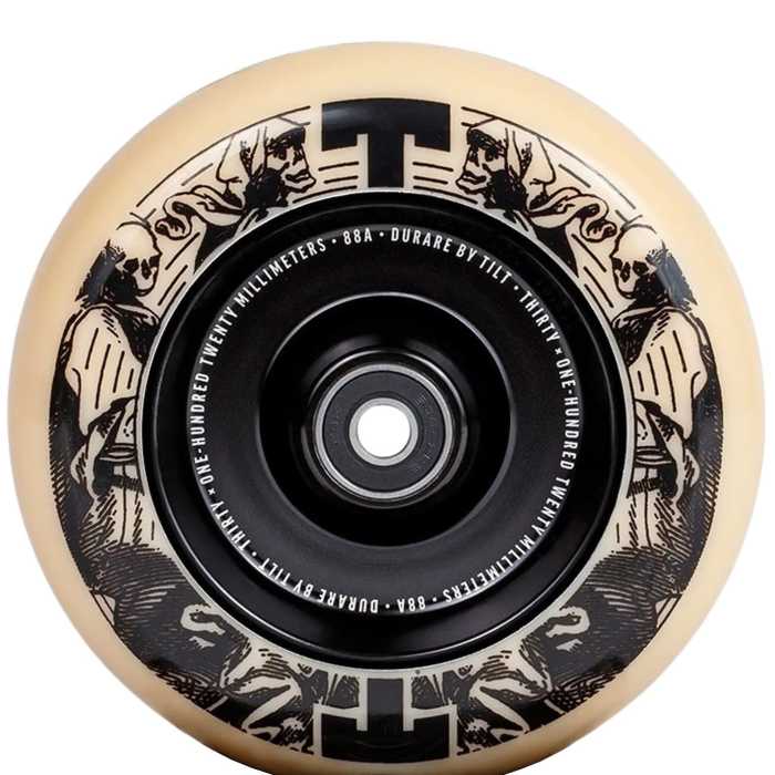 Introducing the Tilt Durare Selects Phantom Scooter Wheel, this wheel is a flawless blend of both style and performance tailored for every scooter enthusiast. Designed with a strong aluminium core, complemented by a stylish CNC finish, ensuring durability and precision. Rocking a 88A wheel durometer (hardness) and classic round profile, offering a balanced ride that is both smooth and controlled. The wheel comes with high-quality bearings and spacers pre-installed for a straightforward installation. Enhance your scooter setup with this top-tier wheel and feel the distinction.