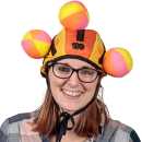 The brightly coloured cloth cap has sticky hook & loop strips attached across several scoring zones, which the special lightweight balls will adhere to.