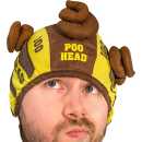 Novelty catching game with a hat and plush balls shaped like mounds of poo.