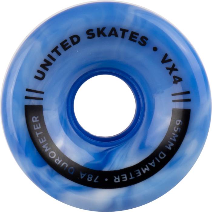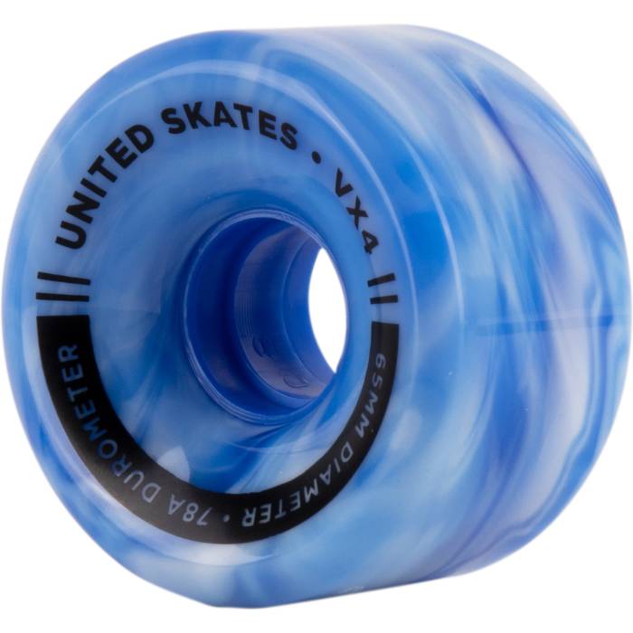 United Skates VX4 Elite 65mm x 36mm 78A Quad Roller Skate Wheels - Marble Blue/White