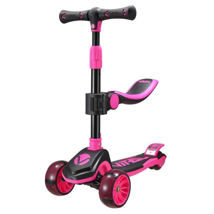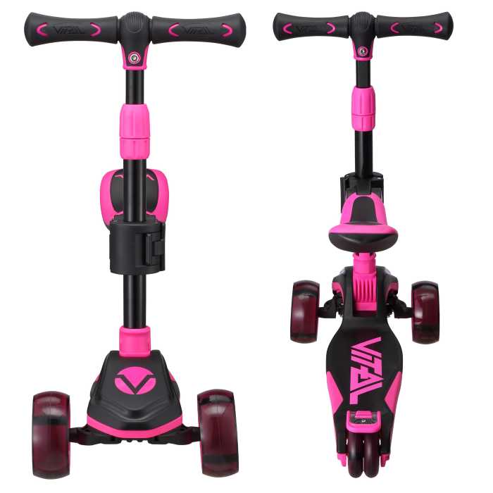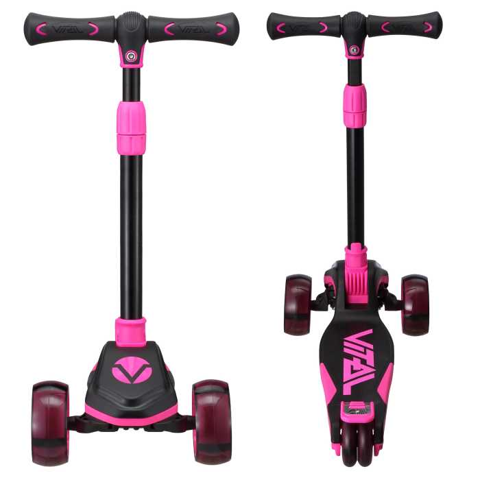 Vital has engineered the TYKE to be more than the cheap, temporary feeling that many kids' scooters provide. A focus on it's practical details has been made to provide a fun, safe and worry free first experience of scooter riding. Bar height is adjustable and the scooter is able to be folded for easier transportation with an easy to use and tool-free adjustability. The attachable seat included can be used for an easier start to riding or great to give your little one a place to rest from using the scooter standing.