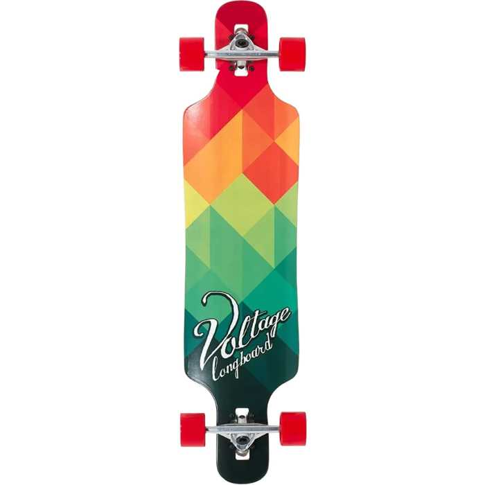 The Voltage DT longboard is a perfect drop-through longboard for beginners and occasional skaters, featuring an eye-catching graphic pattern.