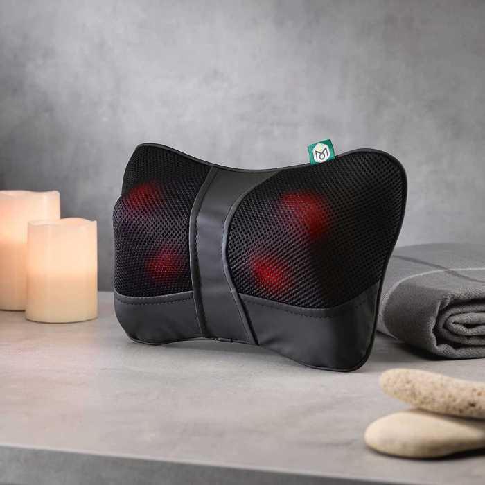 This mini massage cushion (roughly 30 x 14 x 8 cm) is perfect for on-the-go massages and has four pressure points that massage in rotating circles. These pressure points may themselves work in rotating circles, but they’ll put an end to you running in circles trying to find the perfect massage product!
