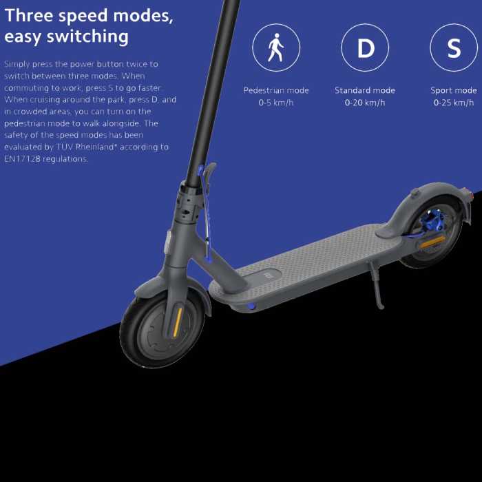 Easily switch by simply pressing the power button twice to switch between three modes. When commuting to work, press S to go faster. When cruising around the park, press D, and in crowded areas, you can turn on the pedestrian mode to walk alongside. The safety of the speed modes has been evaluated by TÜV Rheinland* according to EN17128 regulations.
