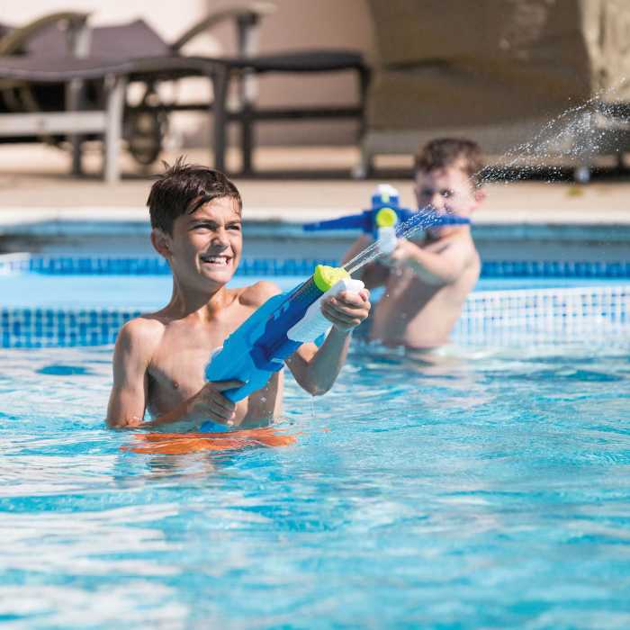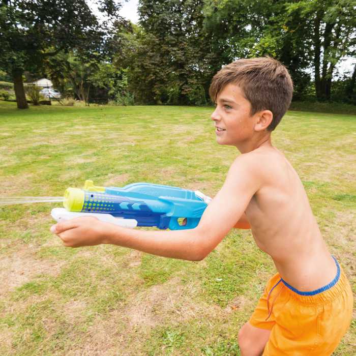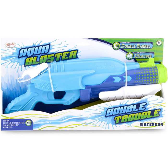 Deal out double the drenching with the Double Trouble watergun! Soaking your friends and family has never been easier with the double jets fired from this Aqua Blaster. Able to fire 12 metres and fuelled by the 1.2 Litre high-capacity on board water chamber, the Double Trouble is double the fun! Able to be used down the park, in the pool or in the garden, this water gun is great for those warm summer days.