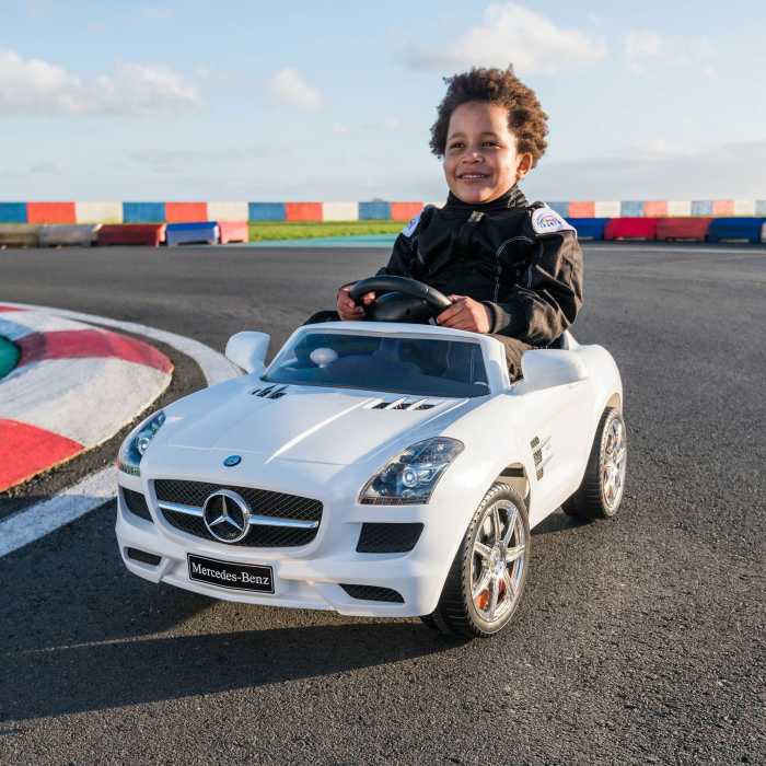 Is there anything more exciting than receiving your very first car? What if that car was a Mercedes-Benz SLS? With a real working steering wheel, pedal, headlights and horn, this Mercedes Electric Toy Car ride-on you can give your child that feeling!