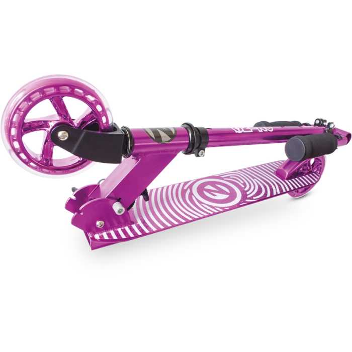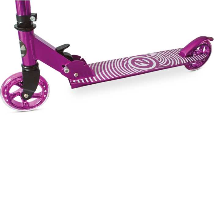The Zinc Folding Identity Scooter is the perfect scooter for beginners. With a lightweight aluminium frame, a sleek design and safe folding mechanism, you'll have the coolest ride around. The soft foam grips, anti-slip footplate and adjustable handlebars provide a safe and comfortable ride. Fitted with durable 120mm PU wheels.